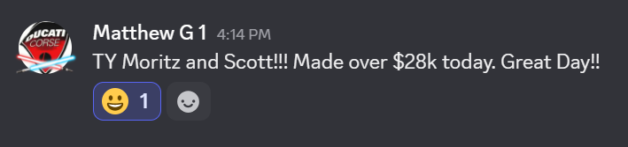 TY Moritz and Scott!!! Made over $28k today. Great Day!!